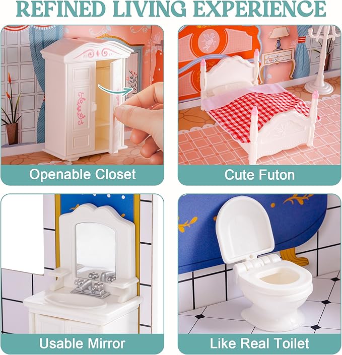Wooden Dollhouse for Kids Girls, Toy Gift for 3 4 5 6 Years Old
